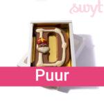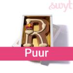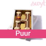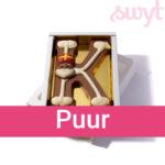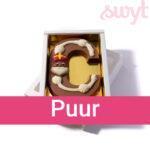 Bij Swyt vind je het volledige chocoladeletters alfabet. Dat betekent: elke letter van het alfabet is verkrijgbaar, in melk, puur of wit. Zo geef je altijd een persoonlijke letter cadeau, precies in de favoriete smaak van de ontvanger.