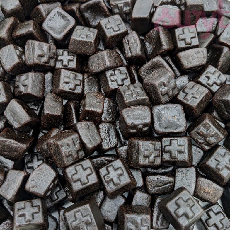 Harde vierkante dropjes met de herkenbare mentholsmaak.