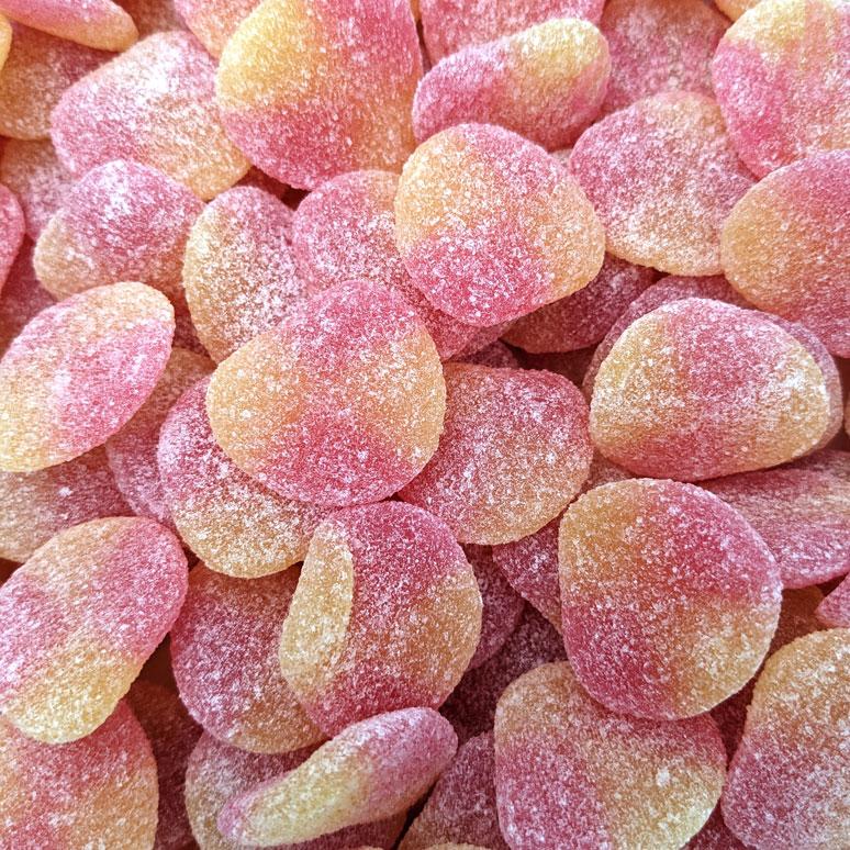 Fijne zachte fruitgum met een zachte perziksmaak en suikerlaagje.